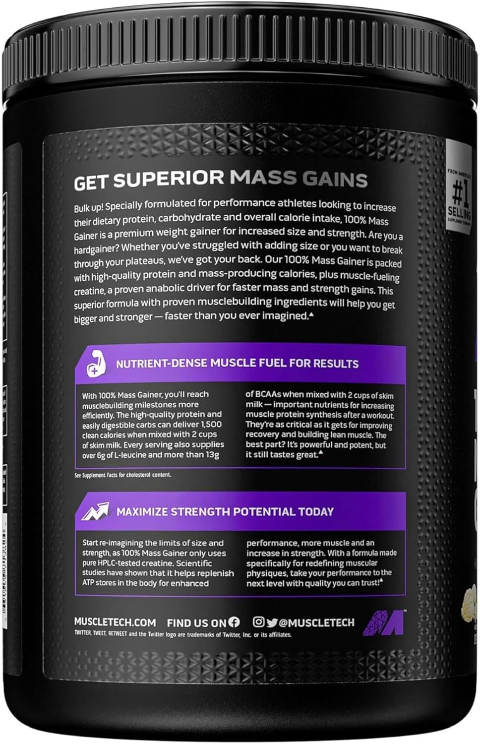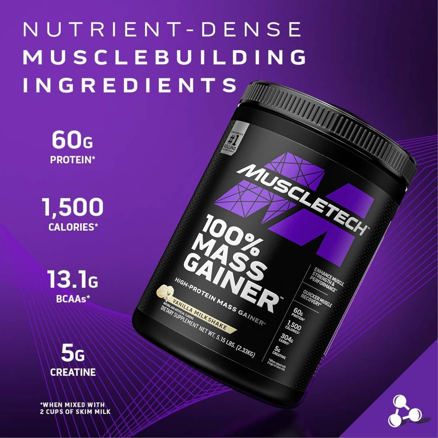 • NUTRIENT-DENSE MUSCLE BUILDER – With 100% Mass Gainer, you’ll reach musclebuilding milestones more efficiently. The high-quality protein and easily digestible carbs can deliver 1,500 clean calories when mixed with 2 cups of skim milk